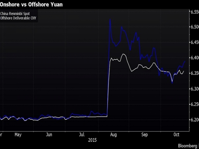 Юанът за кратко засили позициите си в офшорната търговия спрямо долара след доклада на Bloomberg. Валутата се покачи с 0,2% до 6,3966 за долар, считано от 13:07 в Ню Йорк, за удължаване на седмична отстъпление.