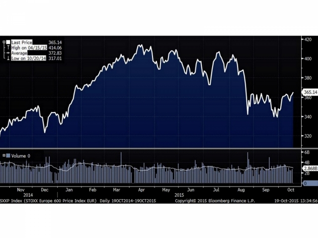 Stoxx Europe 600 Index е почти без промяна през изминалата седмица, като изтри загубите от първите три дни на сесията, завършила в петък 16 октомври. Показателят, който проследява компании в 18 страни от ЕС, възвърна загубите си от дъното в края на миналия месец, предизвикани от загрижеността в забавянето на китайската икономика и скандала с Volkswagen AG.