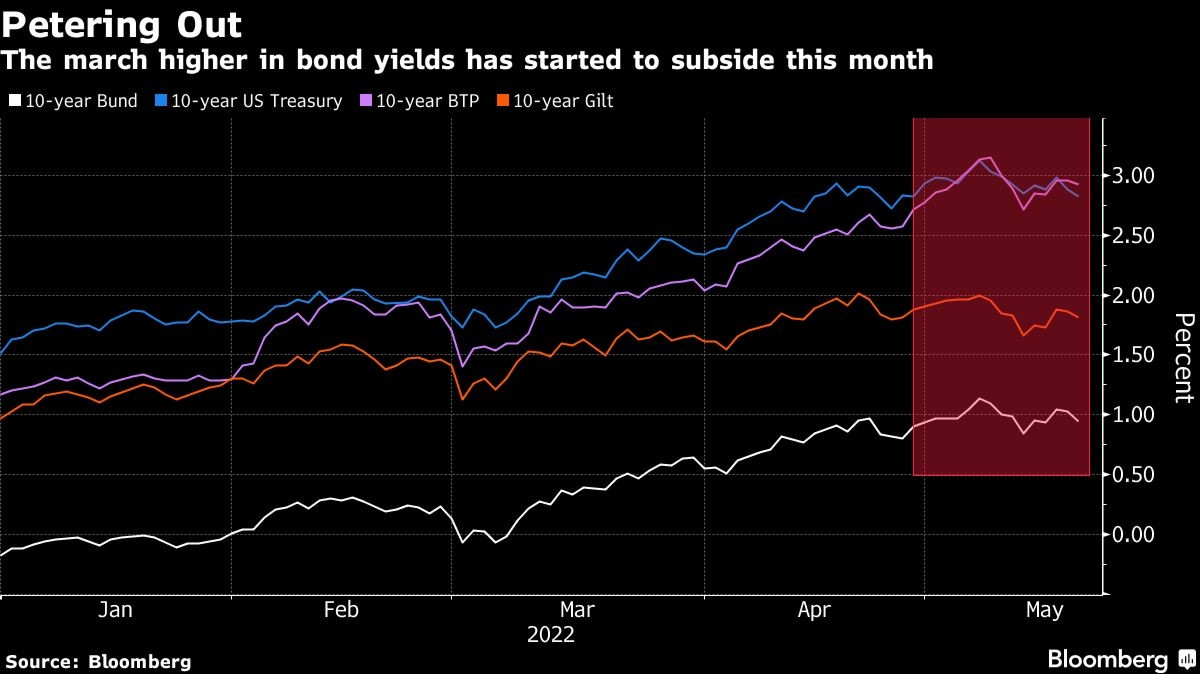 Движенията на акциите и облигациите са „знак, че пазарите са по-уверени в способността на централните банки да намалят инфлацията в крайна сметка“, каза Антоан Буве, лихвен стратег в ING Bank NV.