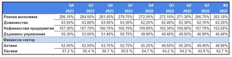- Коефициентът на задлъжнялост за нефинансовите сектори се понижи до 167,3% спрямо 167,7% през предходното тримесечие