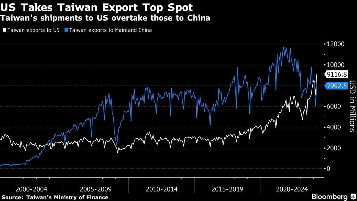 САЩ отново се превърнаха в най-голямата дестинация за износа на Тайван, след като десетилетия Китай беше начело в списъка, показват данни от Министерството на финансите в Тайпе в сряда.