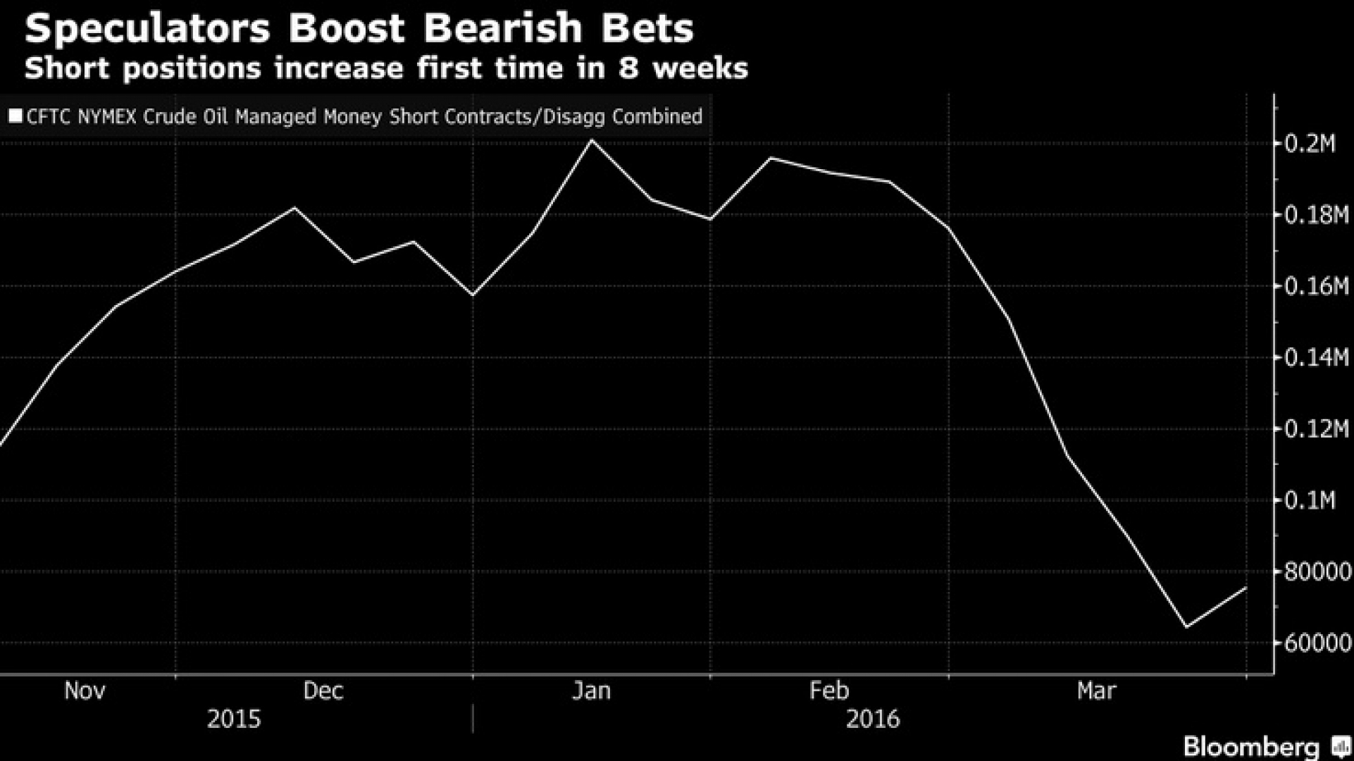 Тенденцията на рекордно затваряне на късите позиции в петрол приключи през седмицата, приключила на 1 април, като това е първата седмица, в която късите позиции в петрол се увеличават от 8 седмици насам. Инвеститорите отварят къси позиции, когато очакват цената на даден актив, който преди това са взели назаем и са продали, да падне, за да могат по-късно да го откупят на по-ниска цена и да го върнат, като по този начин реализират печалба.