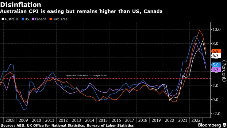 Австралийският индекс на потребителските цени се понижава, но остава по-висок от този в САЩ
