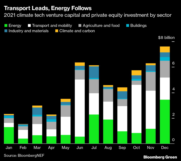 Важното в случая е, че над 50 млрд доалра бяха вложени в частни компании в ранен етап на развитие, а не просто в енергийния или транспортния сектор. Един полезен начин да разделим инвестициите в компании в ранен етап на развитие е или климатичен софтуер или климатичен хардуер.