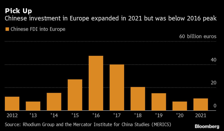 „Ерата на масивните китайски инвестиции изглежда приключила засега“, пишат те. „През 2022 г. очакваме потоците на преките чуждестранни инвестиции от Китай към ЕС да останат на сегашните ниски нива.