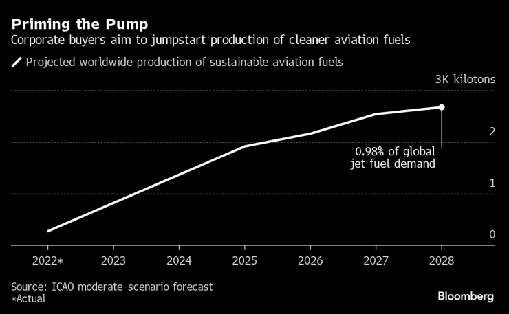 Google също се присъедини към програма, ръководена от American Express Global Business Travel и авиационното подразделение на Shell Plc, а този месец европейският гигант за доставки DHL Group се съгласи да закупи кредити за около 180 милиона галона SAF за седем години.