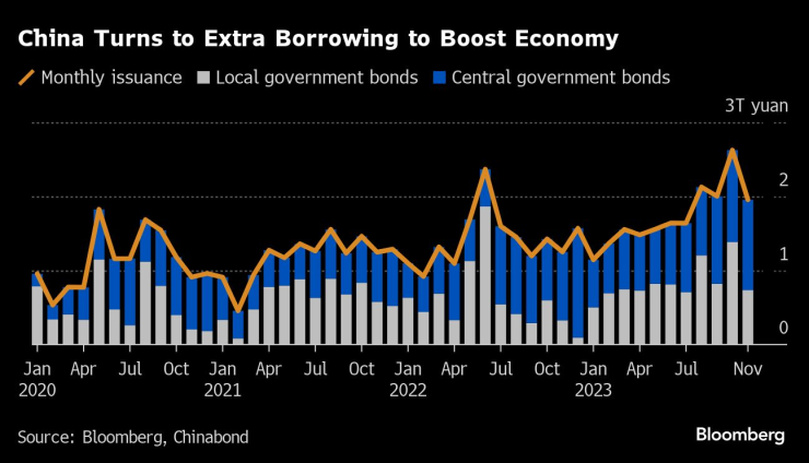 През октомври китайският президент Си Дзинпин даде знак, че няма да търпи рязко забавяне на растежа и дефлационни рискове, тъй като правителството увеличи номиналния си бюджетен дефицит до най-големия от три десетилетия насам. Съотношението на дефицита към БВП за 2023 г. е 3,8%, което е доста над отдавна спазваната граница от 3%.