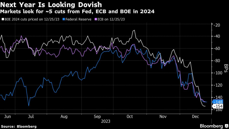 Догодина се очертава по-пасивна нагласа/Пазарите очакват около 5 съкращения от страна на Фед, ЕЦБ и Английската централна банка през 2024 г.