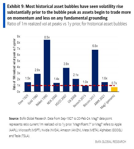 При повечето исторически балони на активи волатилността нараства значително преди пика на балона, тъй като активите започват да се търгуват повече по инерция и по-малко на фундаментална основа.