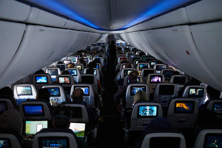 Пътници в самолет Boeing 737 Max-8 по време на полет на United Airlines.