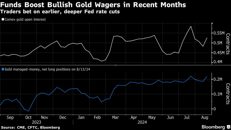 Тъй като златото се покачи, хедж фондовете и спекулантите се включиха по-активно. По данни на Комисията за търговия със стокови фючърси нетните залози на фючърси на Comex са близо до четиригодишния връх, достигнат в средата на юли. Нарастването на открития интерес с 9% през миналата седмица означава, че инвеститорите стават все по-оптимистично настроени по отношение на кюлчетата, а не просто затварят къси позиции.
