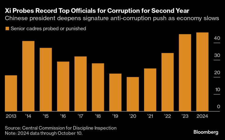 Мащабната антикорупционна кампания на китайския президент Си Дзинпин за две поредни години доведе до рекорден брой уличени високопоставени служители, като подчерта рисковете за бюрократите и застраши да притесни инвеститорите, които и без това са разтревожени за икономиката.