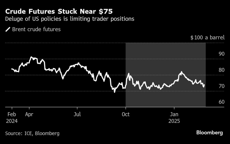 От октомври насам фючърсите върху сорта Брент се търгуват между 70 и 85 долара за барел и макар че през следващите седмици може да се появи повече яснота, засега поредицата от политики прави пазара твърде несигурен за мнозина, за да търгуват уверено.