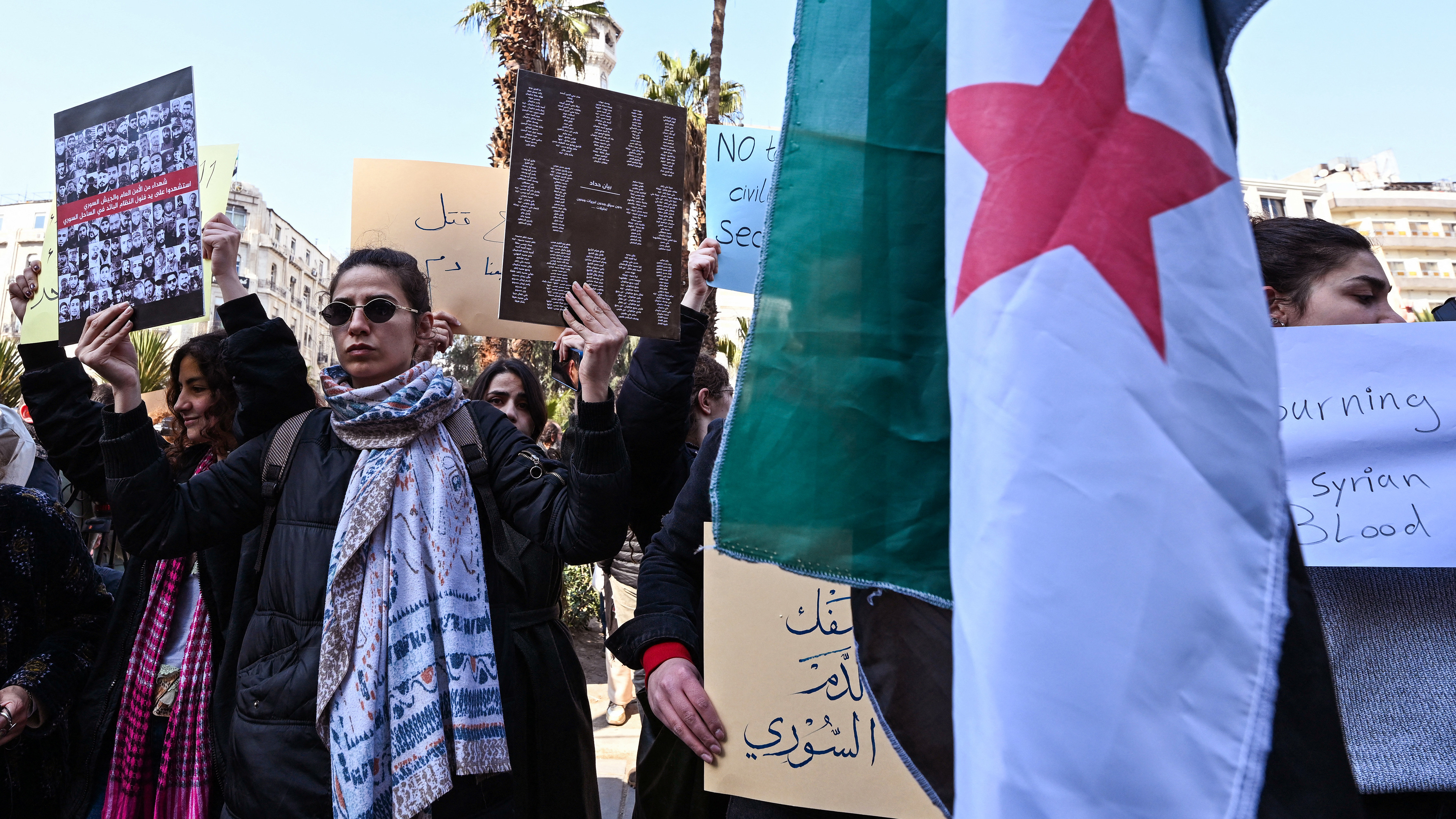 „Трябва да бъдем силни в конфронтацията срещу онези, които се опитват да разпалват сектантски размирици“, заяви Ал-Шараа в реч в неделя. „Ще потърсим отговорност строго от всеки, който е участвал в проливането на кръвта на цивилни граждани“.