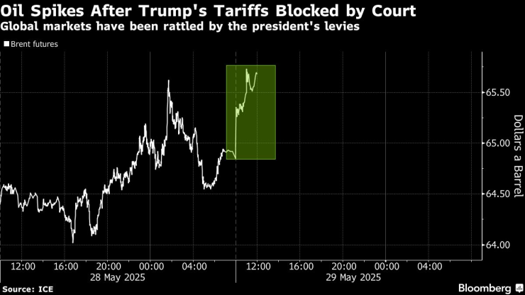 Цената на петрола се повиши заедно с фондовите пазари, след като американски търговски съд блокира глобалните мита на президента Доналд Тръмп, считайки ги за незаконни.