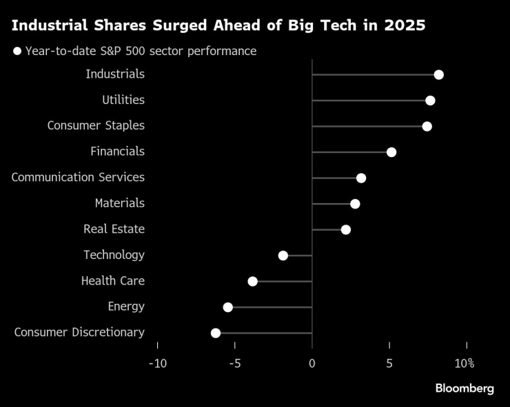 Индустриалните акции скочиха пред големите технологични компании през 2025 г.