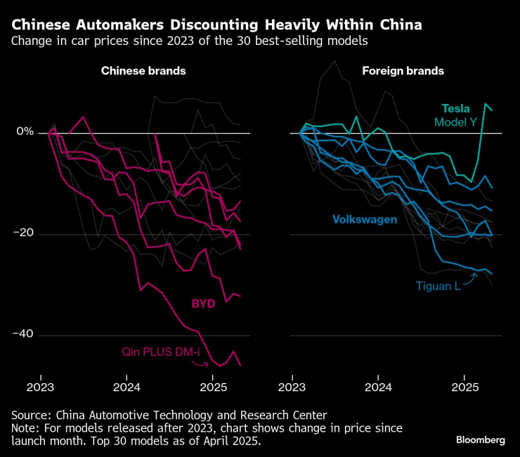 Китайските автомобилни производители правят много по-агресивни отстъпки от чуждестранните си конкуренти.