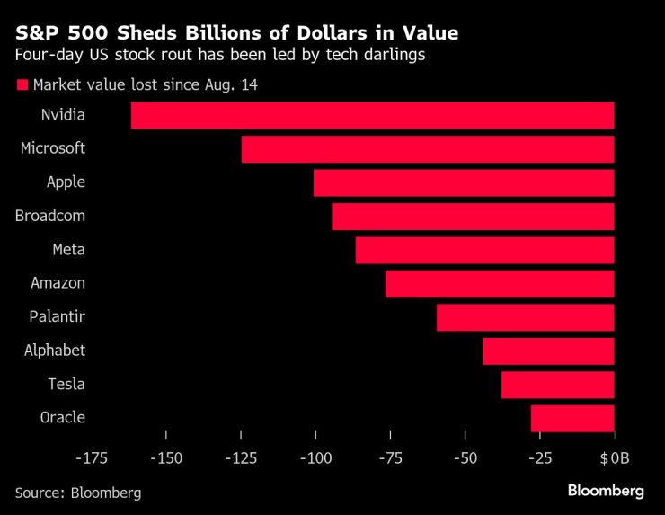 S&P 500 губи милиарди долари от стойността си | Четиридневният срив на американските акции е воден от технологичните фаворити