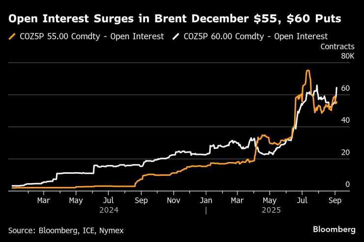 Пут опциите за декември с цена от 60 долара вече се продават за 1,35 долара за брой, в сравнение с 59 цента само преди три дни, което подчертава стремежа към защита преди планираната видеоконференция на алианса в неделя. Ценообразуването на по-широките петролни опции вече беше поело по-песимистичен наклон с края на летния сезон на шофиране, като пут опциите получиха най-голямата премия спрямо бичите очаквания от началото на август.