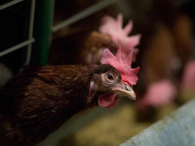 Кокошка във ферма в Западна Фландрия. Белгия. 10 август 2017. Photographer: Jasper Juinen/Bloomberg.