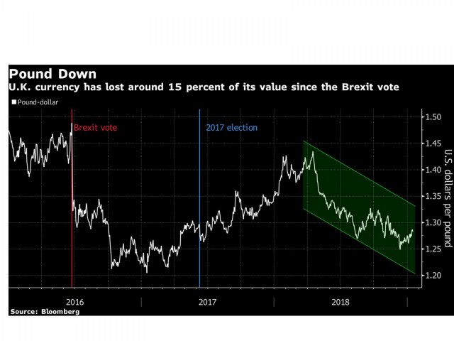 Паундът изгуби 13% от стойността си спрямо долара откакто британците гласуваха да излязат от ЕС през юни 2016.