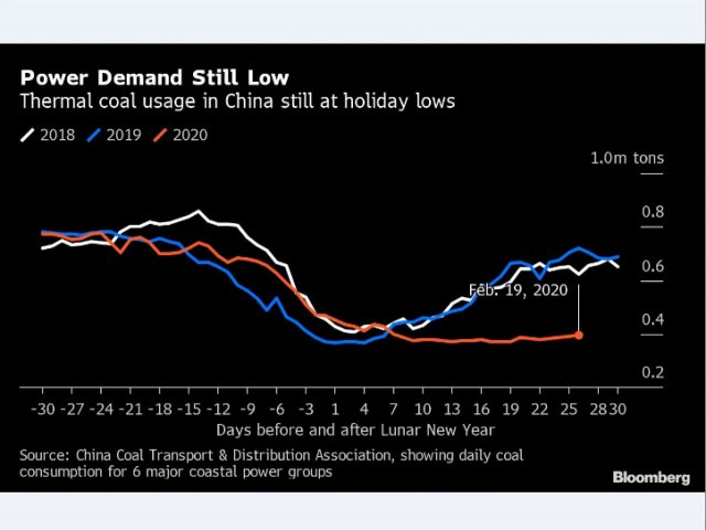 Въпреки че някои компании, най-вече държавните индустриални предприятия и производителите на медицинско оборудване, възстановиха производството, потреблението на електроенергия все още е под обичайните нива за този период на годината. Данните за консумацията на електроенергия предполагат, че голяма част от индустриалния капацитет в Китай остава неизползван. Емисиите на азотен диоксид в седмицата след новогодишните празници са били с 36% по-ниски от нивата в този период на миналата година, сочат изчисления на Центъра за енергийни проучвания и чист въздух, който използва сателитни данни. Според анализаторите от Центъра за този спад е допринесло забавянето от 25 до 50% в индустриални сектори като рафиниране на петрол, производство на електроенергия от въглища и производство на стомана.