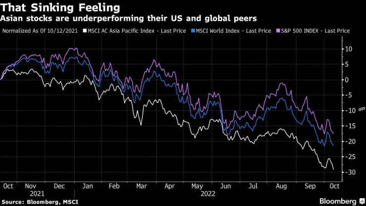 Акциите в Хонконг се насочиха към най-ниското си ниво от десетилетие, водени от технологичните компании, а показателят за акциите в континентален Китай се срина към ново двегодишно дъно. Референтният индекс на Южна Корея падна, след като централната банка се върна към прекомерни увеличения на лихвените проценти.