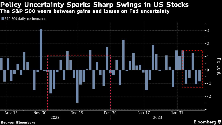 Междувременно акциите на Lyft Inc. се сринаха с около 30% в следборсовата търговия след данни за печалбата, които значително пропуснаха прогнозите на анализаторите, докато компанията се готви да жертва печалби в опит да привлече клиенти с по-ниски цени. В редовната сесия Tesla Inc. разшири ралито, което тласна цената на акциите на производителя на електрически превозни средства нагоре с около две трети от началото на тази година. Акциите на Alphabet Inc. паднаха допълнително поради опасения относно нейния чат бот с изкуствен интелект, представен по-рано този месец.