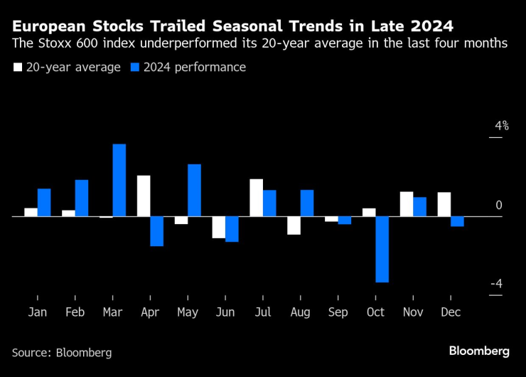 Европейските акции следват сезонните тенденции в края на 2024 г. | Индексът Stoxx 600 се представи под средното си ниво за 20 години през последните четири месеца