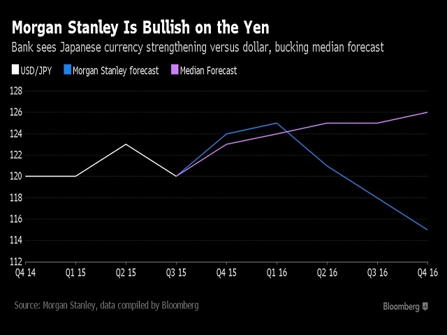 Morgan Stanley заяви, че 2016 г. ще бъде годината на йената. Японската валута ще засенчи долара, като инвестиционната банка прогнозира, че японската валута ще засили позициите си до 115 йени спрямо долара до края на 2016 г. Това контрастира със средна прогноза за йената през следващата година, която според проучване на Bloomberg ще се движи около нивата 126 йени за долар, което бе и най-ниското ниво за 2015 г., достигнато през август.
