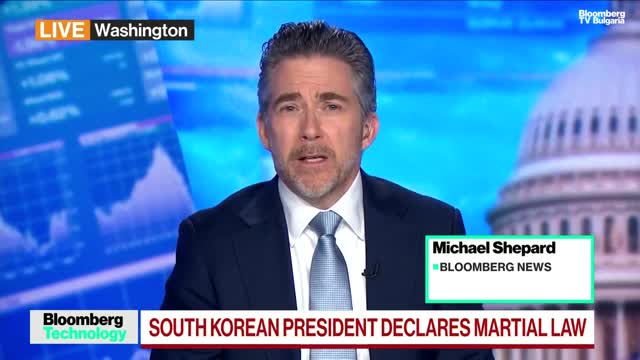Искам да ви покажа и какво се случва в Южна Корея. Основни акции там от технологичния сектор, SK Hynix, чипове, Samsung, чипове, телефони, всичко технологично и значителна част от износа на тази страна загубиха много. Вижте тези акции, които се търгуват в чужбина – Лондон и Германия. Всичко това защото ръководството на Южна Корея обяви военно положение. Членовете на партията на президента обаче не са съгласни с решението му. Чуйте последните новини заедно с нас. Може да го направите в каналите на Bloomberg на живо. На терминала напишете TLIV и натиснете Go. Но ние ще включим и Майк Шепърд от Вашингтон. Толкова много говорим за геополитика днес. Кажете ни колко изключителни са събитията там.