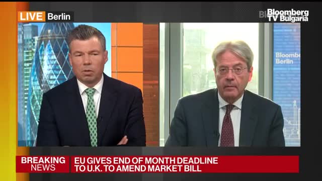 В интервю на Гай Джонсън за Bloomberg, еврокомисарят по икономическите въпроси Паоло Джентиони коментира плана на британския министър-председателят Борис Джонсън да премахне части от споразумението на страната за Брекзит: