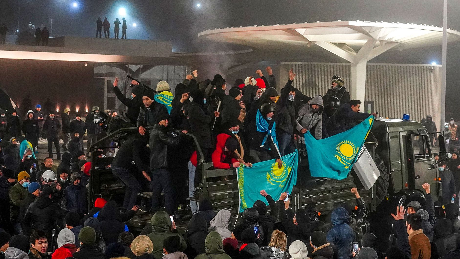 Протестите привлякоха хиляди души, бяха съсредоточени върху правителствени сгради и летището и произведоха призиви към дългогодишния лидер Нурсултан Назарбаев да се откаже от юздите на властта. 81-годишният Назарбаев прехвърли президентството на Касим-Жомарт Токаев през 2019 г., но запазва значително влияние в политическата система на страната.