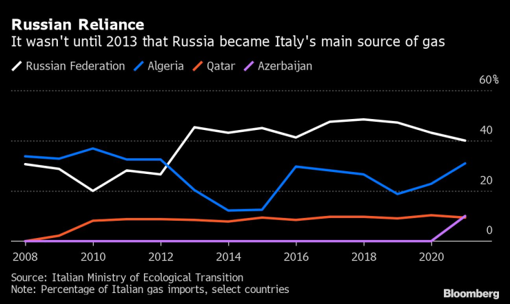 Той остана решителен, дори когато министърът на енергетиката Роберто Чинголани предупреждаваше, че ако потоците газ бъдат спрени този месец, Италия ще има трудности да преживее следващата зима, и привличе на помощ енергийния гигант Eni SpA, за да помогне с неговия план за спиране изцяло на руския газ през следващата две години.