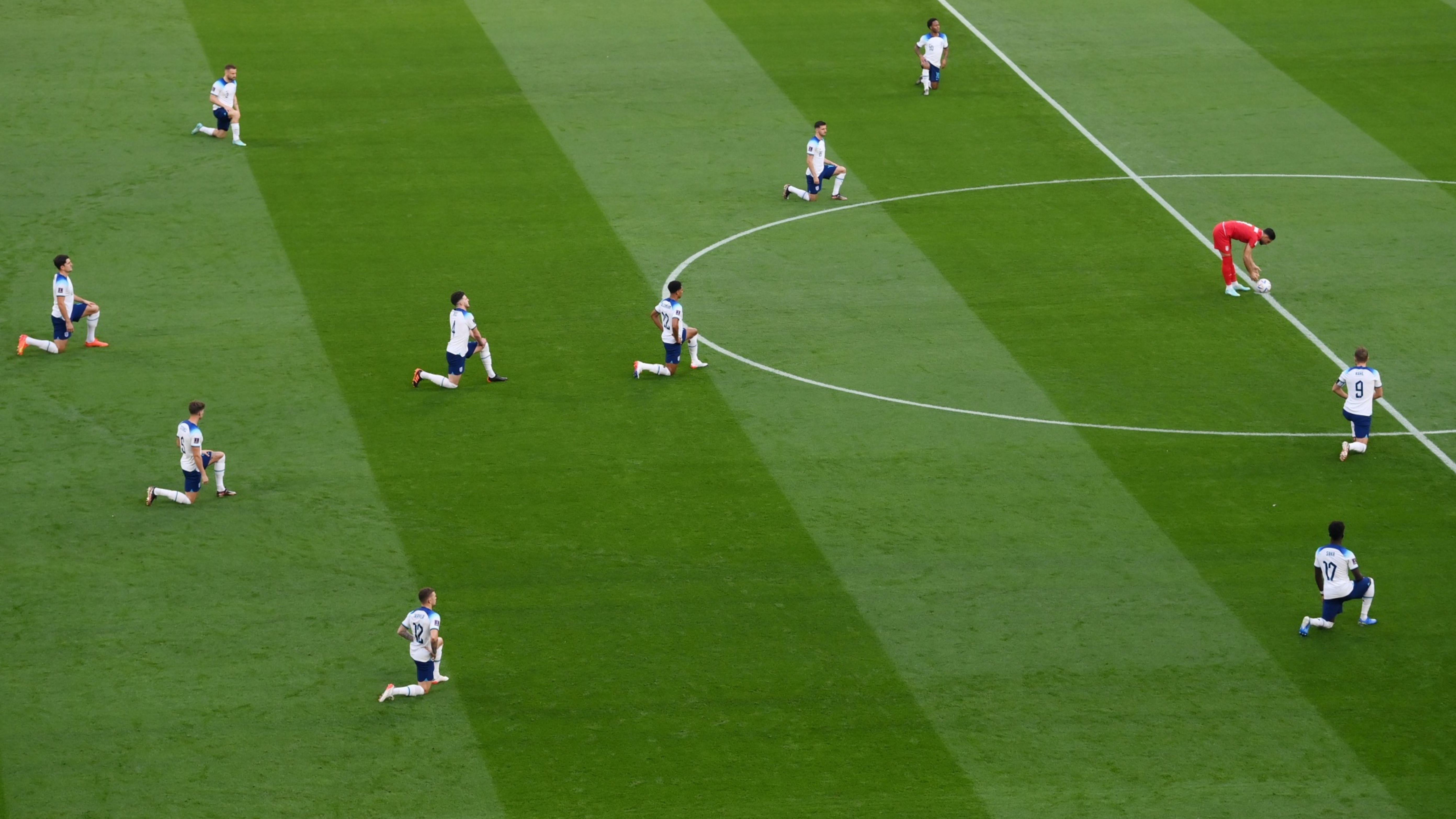 Отборът не е приел този жест. Но играчите коленичиха преди началото на мача с Иран. Този акт на мълчалив протест вече е утвърден елемент от мачовете на Висшата лига в Англия, въпреки че има своите критици в Обединеното кралство и САЩ, откъдето произхожда.