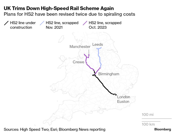 Широко предизвестеното решение на министър-председателя Риши Сунак да отмени севернaта част на високоскоростната железопътна мрежа на Обединеното кралство предизвика политически фурор, обединявайки членове на неговата управляваща Консервативна партия и опоненти от Лейбъристката партия в осъждане, като същевременно предизвика ликуване сред критиците на проекта. Неговото по-трайно наследство може да е ефектът върху позицията на Великобритания сред инвеститорите.