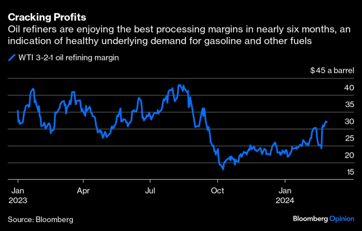 По моя информация вътре в картела има силно мнение, че „пазарните условия“ не изискват повече барели в момента. Цените на петрола, дори и да са по-високи от края на 2023 г., все още не са достатъчно високи, за да оправдаят изпомпването на повече, казват някои. Част от текущата сила на пазара също може да бъде мираж, продължава мнението. През януари няколко прекъсвания, включително студеното време в САЩ, намалиха глобалното предлагане, което доведе до по-голямо от очакваното намаляване на запасите. Но този петрол се връща сега. Освен това сезонът за поддръжка на рафинериите е зад ъгъла, което намалява нуждата от петрол, особено през април.