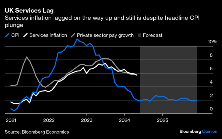Тази седмица се очаква инфлацията на потребителските цени в САЩ и Обединеното кралство да се повиши. Това рискува да обърка внимателно подготвените послания на централните банки, че рестриктивната парична политика е към своя край. Широко разпространено е очакването, че следващия месец Федералният резерв ще последва Европейската централна банка и Английската централна банка, които вече предприеха първите стъпки за понижаване на лихвените проценти. Но както остро се изразява главният икономист на Bloomberg за Великобритания Дан Хансън: "Оптиката на облекчаване на политиката, когато инфлацията се покачва, не е благоприятна".