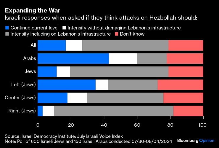 Според проучване на израелската агенция Lazar за ежедневника Maariv този месец популярността на Нетаняху се повишава, като за първи път от началото на войната той изпреварва лидера на опозицията Бени Ганц като най-подходящия човек да ръководи Израел. А когато Израелският институт за демокрация попита дали хората искат страната им да разшири войната, за да атакува „Хизбула“ в Ливан, отговорът беше предимно положителен.