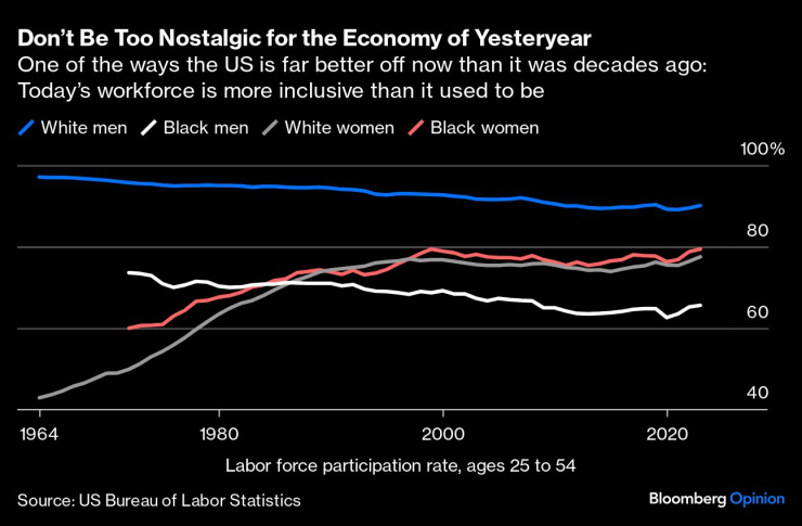 Не бъдете прекалено носталгични по икономиката на миналото | Един от начините, по които САЩ са много по-добре сега, отколкото преди десетилетия: днешната работна сила е по-приобщаваща, отколкото беше