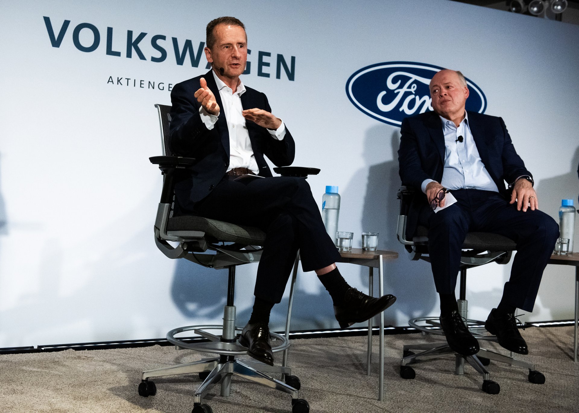 Херберт Дийс, гл. изп. директор VW, Джим Хакет, президент и гл. изп. директор Ford