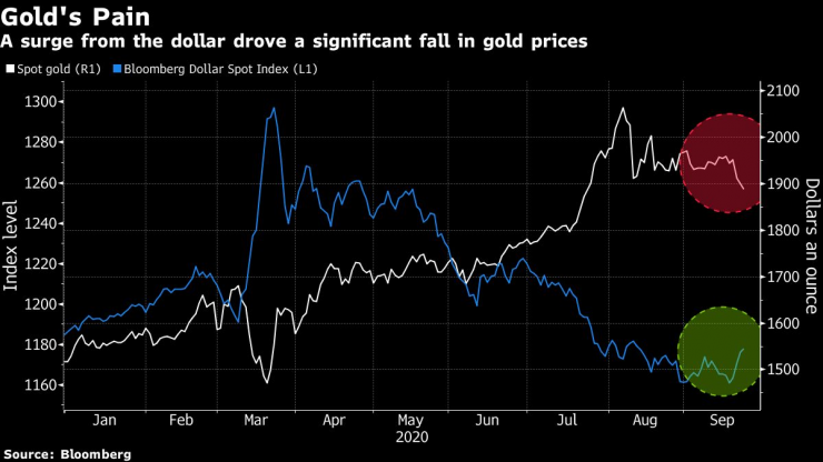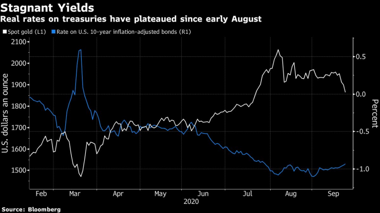 Безпрецедетните стимули в глобален мащаб, отрицателните реални лихви и отслабеният долар насърчиха цената на златото до рекордно високо ниво от над две хиляди долара за тройунция в началото на август. Въпреки че някои банки, включително Goldman Sachs и Bank of America, предвиждат дори по-високи цени на благородния метал, възстановяването на зелените пари изтри някои от ръстовете при златото.