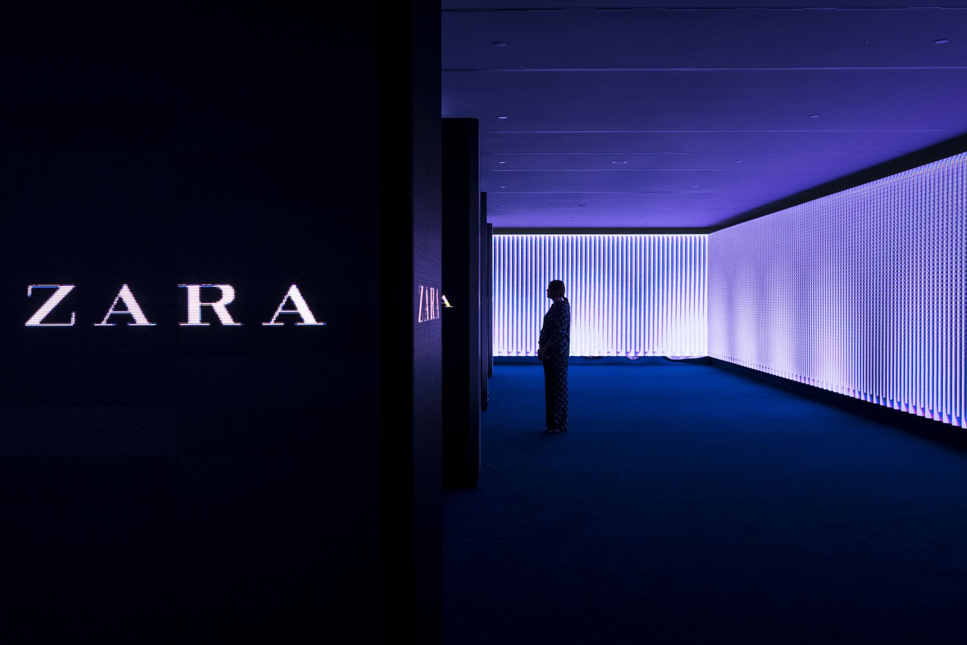 Логото на модната марка за облекла ZARА в централата на Inditex в Испания, март 2018. Снимка: Daniel Rodrigues/Bloomberg