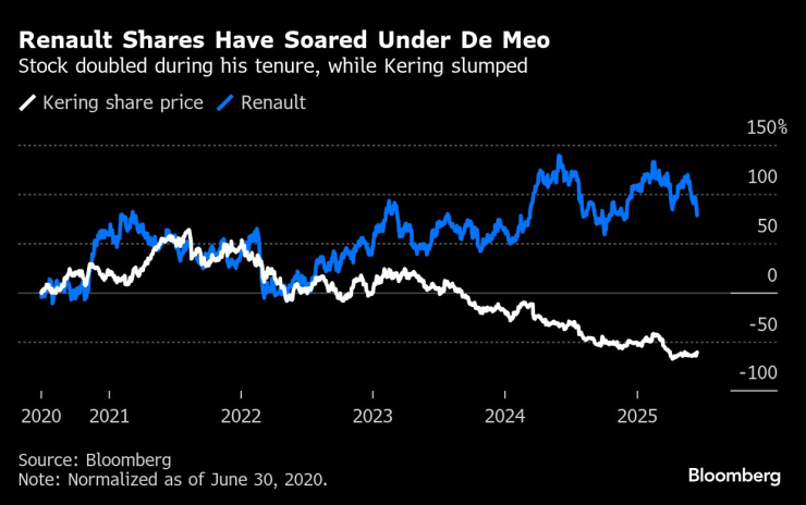Гамата на Renault беше напълно преобразена в периода на ръководство на Де Мео. Според Стивън Райтман, анализатор на акции в Bernstein, напускането на директора е сериозна щета за френската компания.