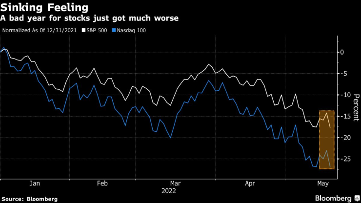 Бруталният спад на "Уолстрийт" продължи и в сряда, с най-тежката еднодневна загуба от юни 2020 г. за S&P 500. Референтният индекс сега е надолу със 17,5% от пика си в началото на годината, изтривайки 499 милиарда долара пазарна стойност. В един момент S&P падна с близо 20% и беше на прага да потвърди мечи пазар.
