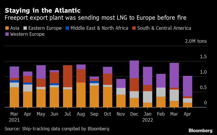 Операторът на съоръжението за износ на втечнен природен газ Freeport в Тексас, който беше затворен миналата седмица заради пожар каза, че може да отнеме 90 дни, за да може заводът да работи частично, много по-дълго от по-ранна прогноза от минимум три седмици. Не се очаква съоръжението да заработи с пълен капацитет до края на 2022 г.
