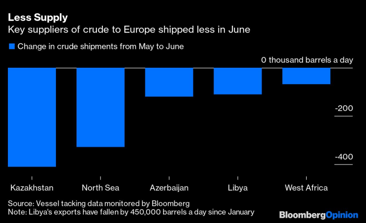 Износът на казахстански петрол представлява повече от 1% от световните доставки, или приблизително 1,4 милиона барела на ден (bpd).