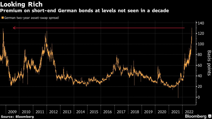 Преди решението на ЕЦБ временно да премахне тавана на лихвените проценти по държавните депозити, двугодишните германски облигации се търгуваха с най-голямата премия към суапове от 2008 г. насам. Търговците се подготвяха държавните пари да напуснат хазната на централната банка и да се насочат към висококачествени ценни книжа.