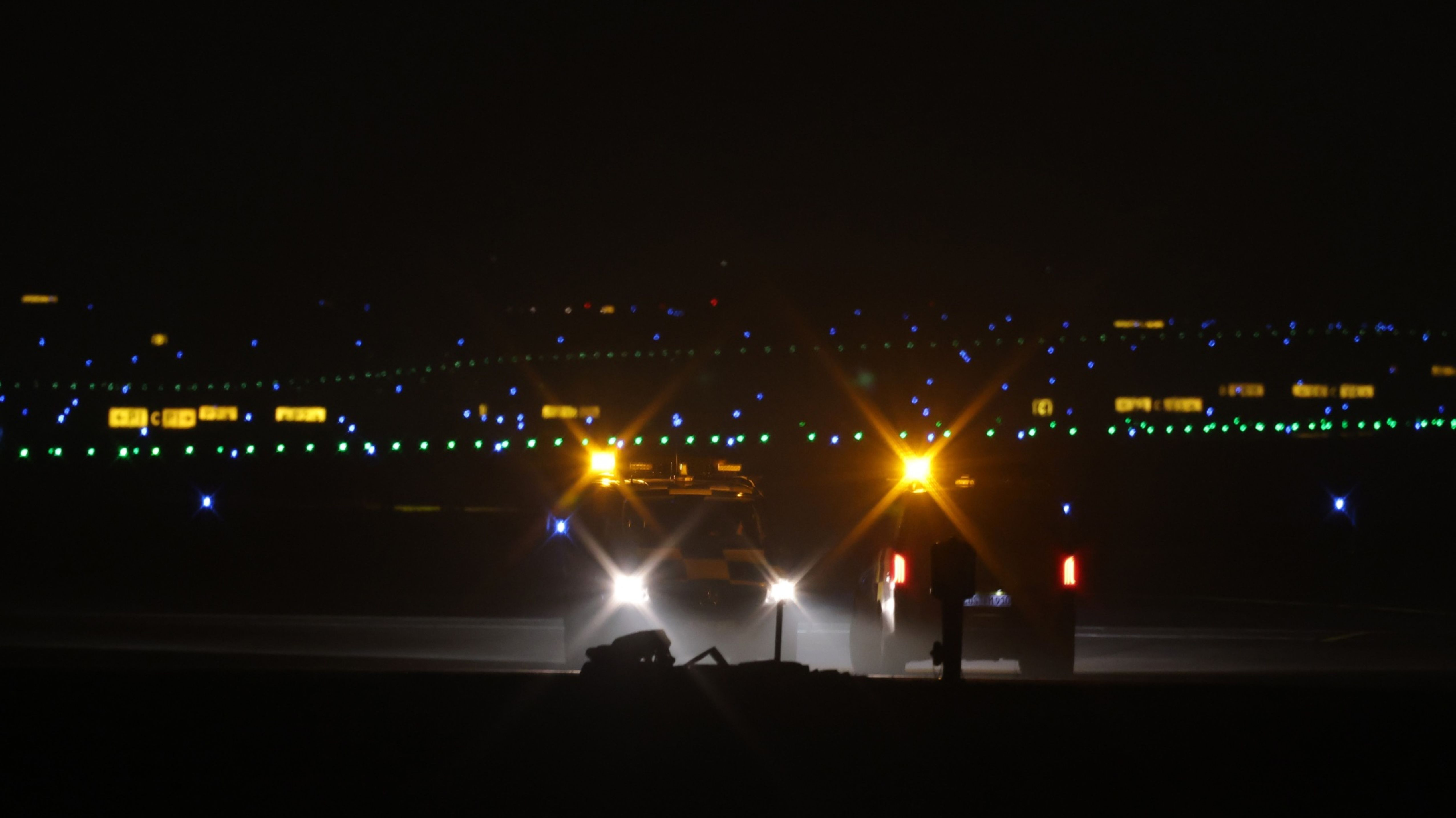 Облечени в ярки жилетки, те се разхождат по тревата, след което се качват на пътеките за рулиране и обикалят с велосипеди по летищната площадка, после правят спешно обаждане, за да информират полицията за присъствието си.