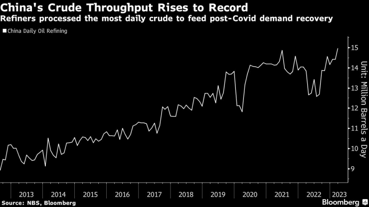 Китай е най-големият вносител на суров петрол в света и широко се прогнозира, че потреблението тази година ще нарасне до безпрецедентни нива след премахването на антивирусните ограничения. Бумът в преработката може да предложи допълнителна подкрепа за фючърсните цени на суровия петрол, които са скочили с повече от 13% досега през 2023 г., тъй като Организацията на страните износителки на петрол и нейните съюзници намалиха производството.